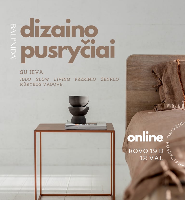 Praktiniai susitikimai, padedantys atrasti kūrybos džiaugsmą, suprasti interjero pagrindus ir sąmoningai kurti harmoningą namų aplinką.